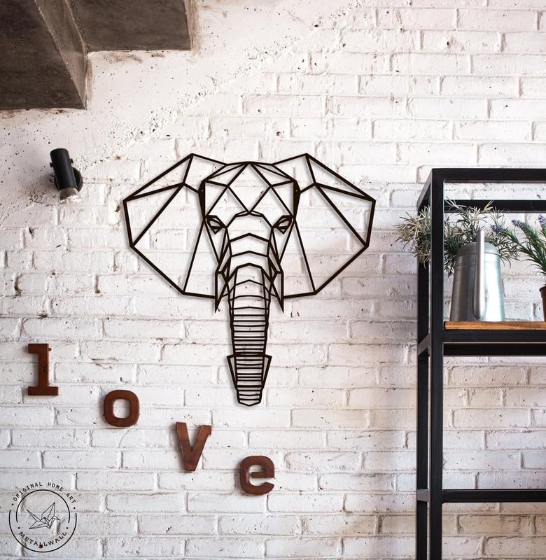 Generic - لوحة فنية جدارية بتصميم هندسي على شكل رأس فيل مقاس 90 × 90 سم بلون اسود WQ.WA102.02