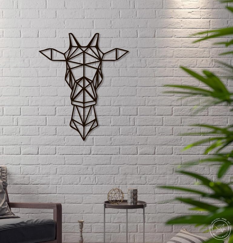 Generic - لوحة فنية جدارية بتصميم راس زرافة هندسية مقاس 80×65 سم بلون اسود WQ.WA113.05