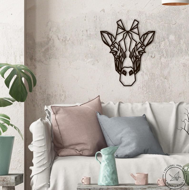 Generic - لوحة فنية جدارية بتصميم راس زرافة هندسية مقاس 80 × 67 سم بلون اسود WQ.WA120.14