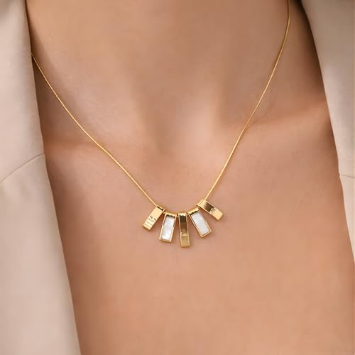 Generic - قلادة مطلية بالذهب بتصميم هندسي للنساء - قلادة عصرية مستطيلة الشكل مع لؤلؤ هندسي، هدية مجوهرات انيقة وبسيطة