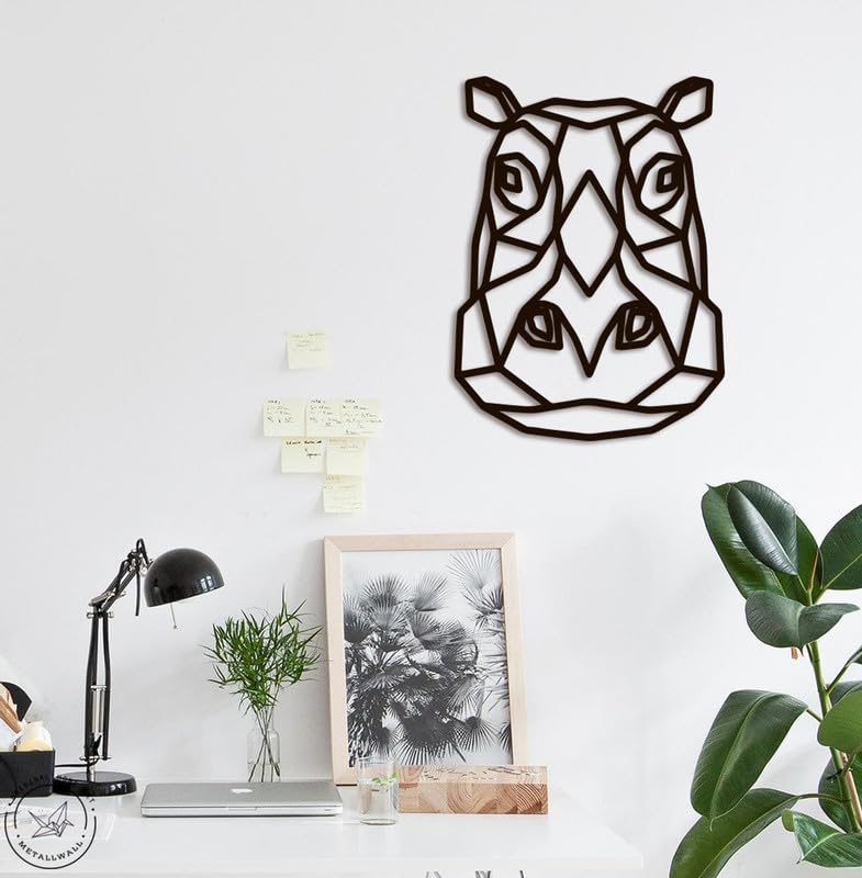 Generic - لوحة فنية جدارية بتصميم هندسي لرأس فرس النهر مقاس 100 × 77 سم بلون اسود WQ.WA202.03