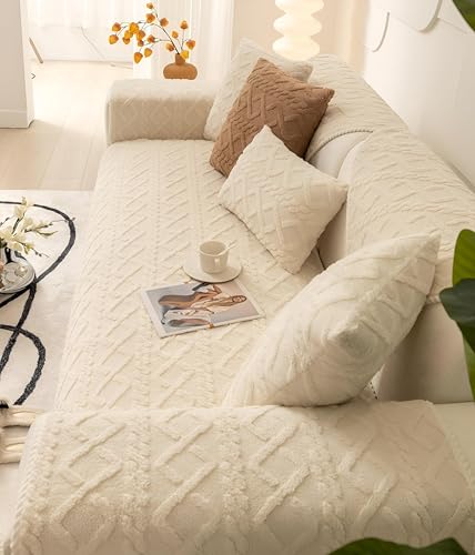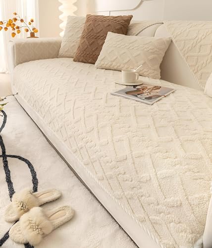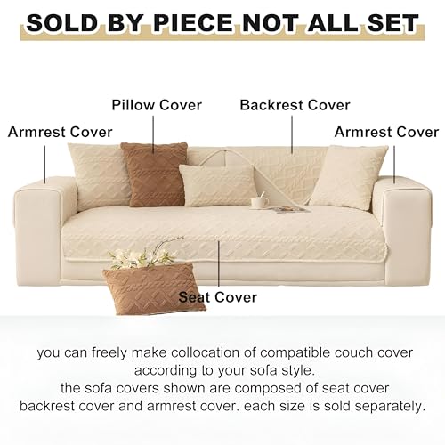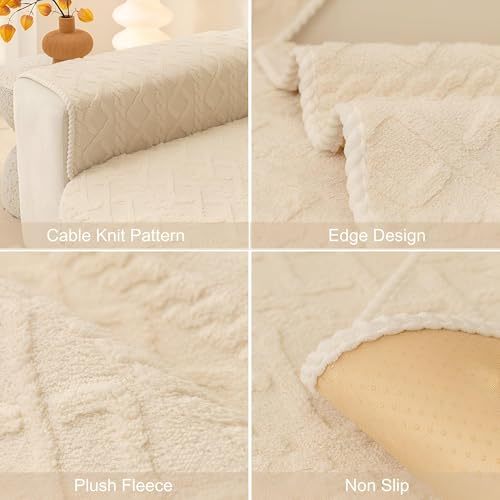 Generic - غطاء كنب جاكار للعيد مانع للانزلاق بتصميم هندسي من الجاكار غير قابل للانزلاق لحماية الأثاث في العيد، لون كريمي
