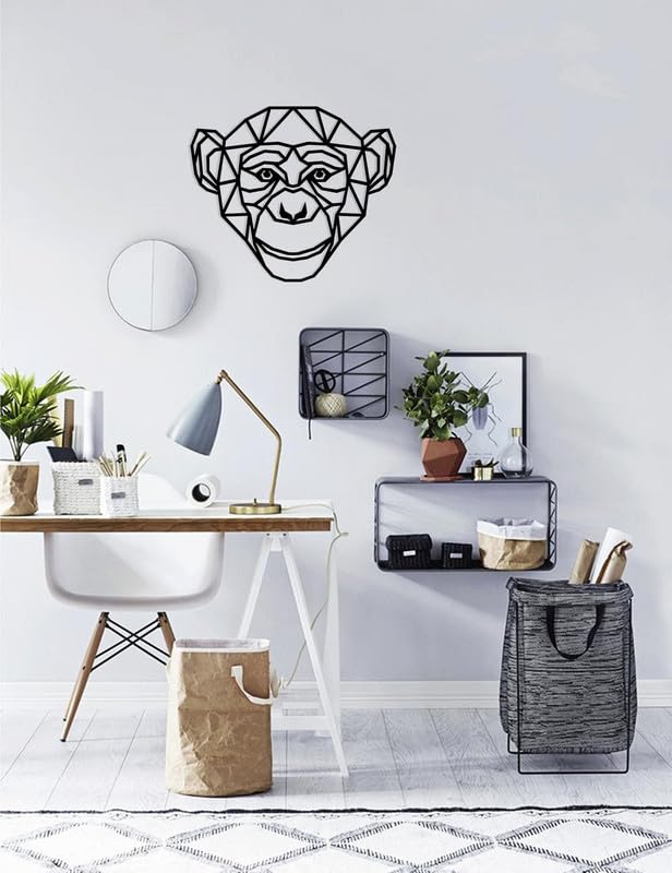 Generic - ديكور حائط بتصميم راس قرد هندسي مقاس 40 × 34 سم، لون اسود، WQ.WA98.08