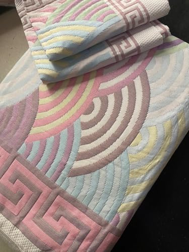 Generic - غطاء سرير منسوج بنمط هندسي، متعدد الألوان الباستيل، أزرق وردي أصفر، تصميم عصري مع نقشة جيومترية _ مناسب كغطاء من قماش الكتان الناعم مقاس 220 * 240 + 2 كيس وساده
