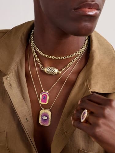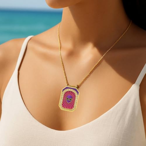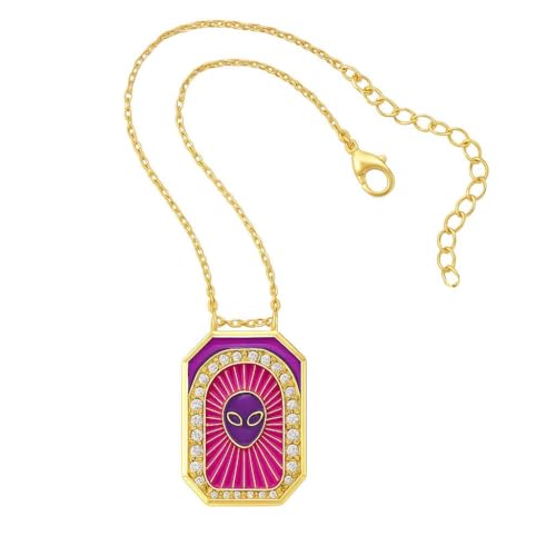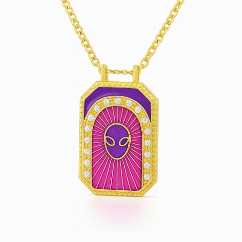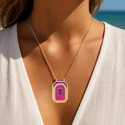 Generic - قلادة بدلاية هندسية - سلسلة ذهبية اللون مع مينا ارجواني وزهري، قلادة مجوهرات للنساء هدية