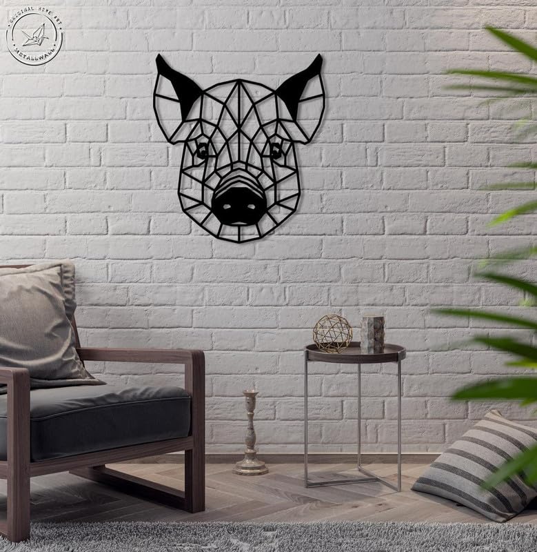 Generic - لوحة فنية جدارية بتصميم راس خنزير هندسي مقاس 30×32 سم لون اسود WQ.WA161.07