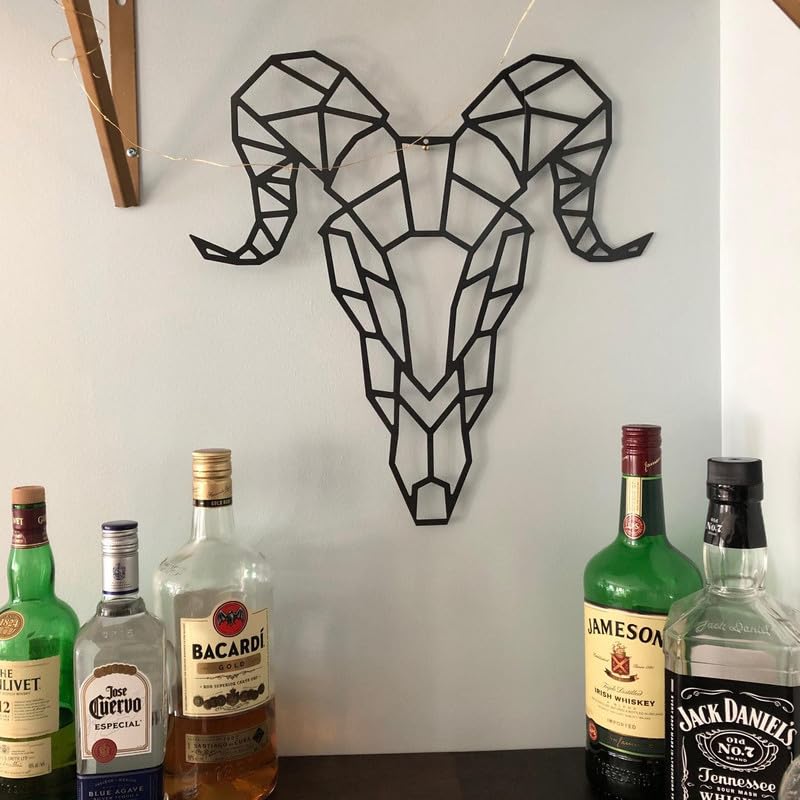 Generic - لوحة فنية جدارية بتصميم جمجمة رام هندسية مقاس 30 × 30 سم بلون اسود WQ.WA196.18