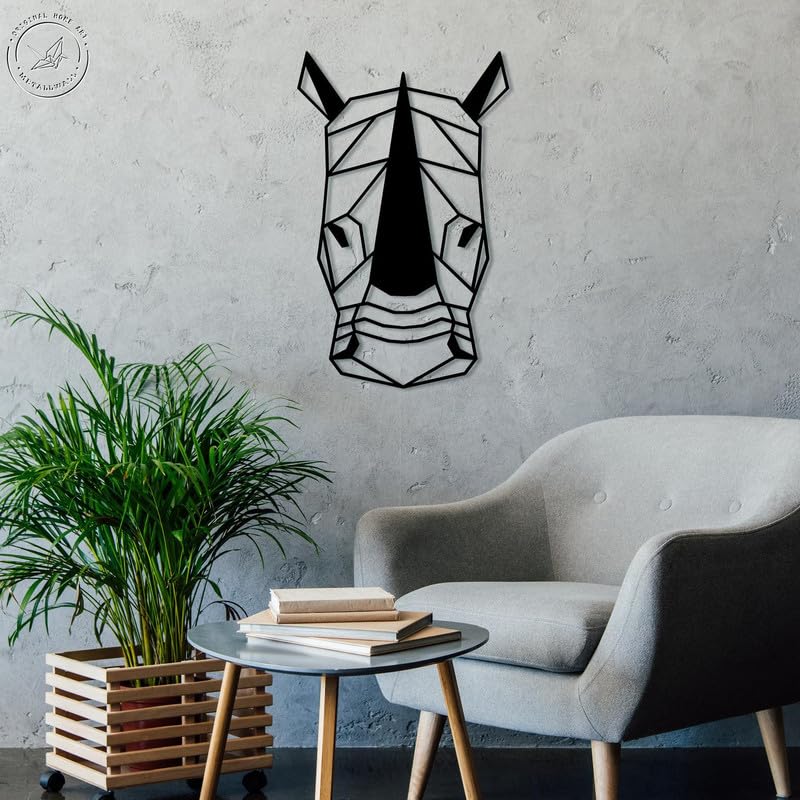 Generic - لوحة فنية جدارية بتصميم هندسي لراس وحيد القرن مقاس 100 × 64 سم بلون اسود WQ.WA108.04
