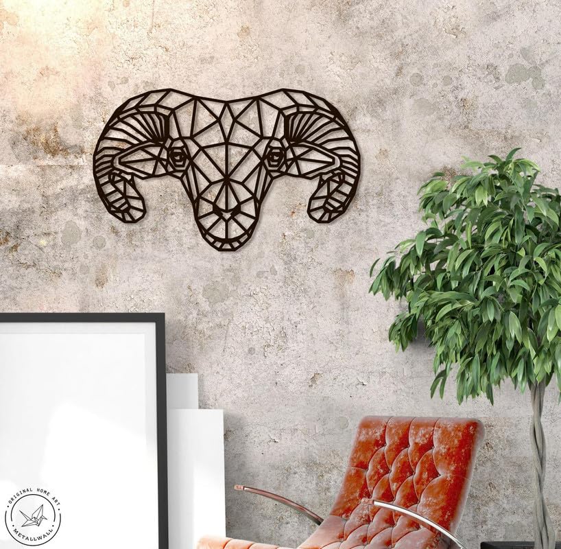 Generic - لوحة فنية جدارية بتصميم راس خروف هندسي مقاس 60×36 سم لون اسود WQ.WA105.08