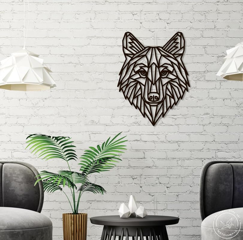 Generic - لوحة فنية جدارية بتصميم هندسي على شكل رأس ذئب مقاس 40 × 31 سم بلون اسود WQ.WA171.09