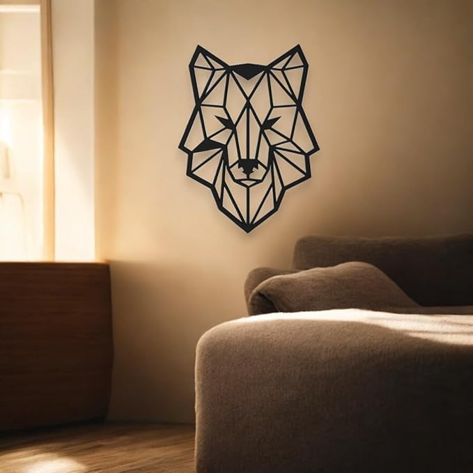 - تصميم جمالي: ديكور حائط عصري بتصميم ذئب هندسي، يتميز بنمط تجريدي لافت يتكون من خطوط نظيفة وأشكال زاويّة، ما يجعله قطعة فنية عصرية تعبّر عن البساطة والأناقة العصرية.