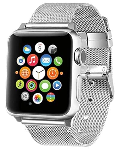 GEOTEL - سوار من الستانلس ستيل لساعة آبل 38مم, فضي