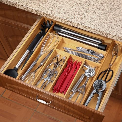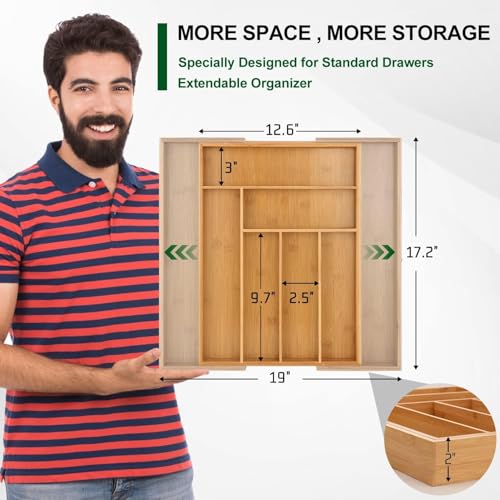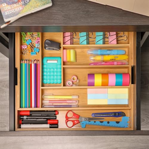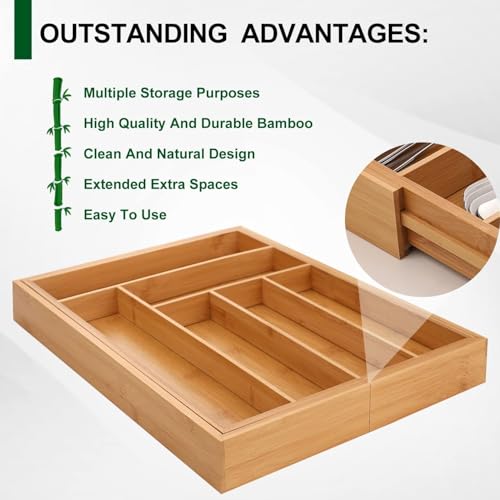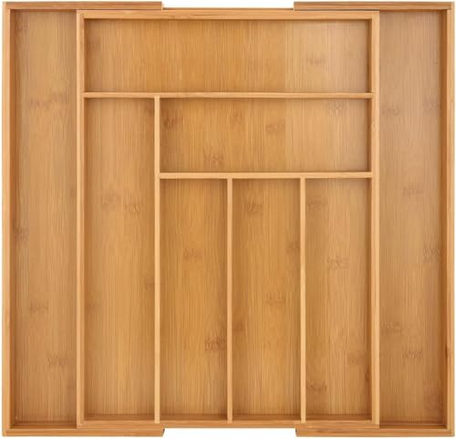 Geoveins - منظم وحامل أدوات المائدة من البامبو قابل للتوسيع للأدراج في المطبخ من جيوفينز، (6 إلى 8 فتحات تخزين)