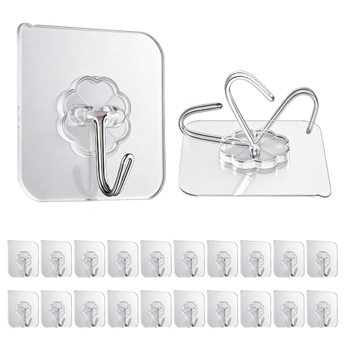 GEPUTING - خطاف حائط شفاف متين غير ملحوم ذاتي اللصق مقاوم للماء والزيت بحمل وزن أقصى 15 كيلوجرام للحمام والمطبخ قابل لإعادة الاستخدام من جيبوتينج، 20 قطعة