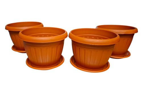 Generic - أصيص زرع ألماني مقاس 20 سم، مجموعة من 4 قطع، (لون أحمر وبني)