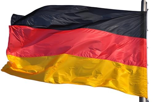 - خامة عالية الجودة ومقاس: أظهر دعمك بعلم ألمانيا الكلاسيكي، مصنوع من البوليستر القوي والمتين. بأبعاد 90 × 150 سم ووزن تقريبي 82 غرام (بما في ذلك العبوة) مثالية لسارية العلم والشرفات والحدائق والمناسبات العامة.