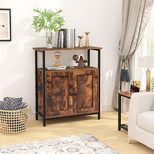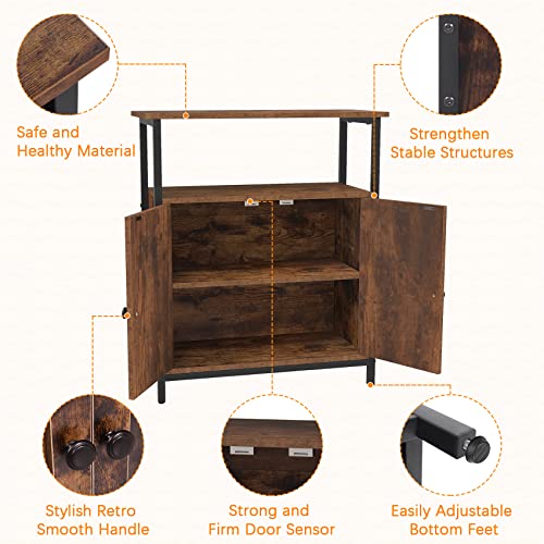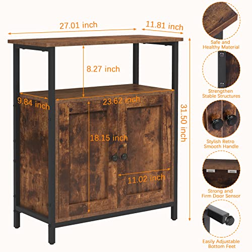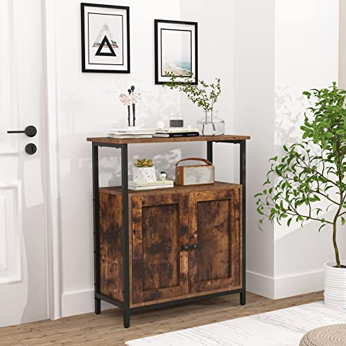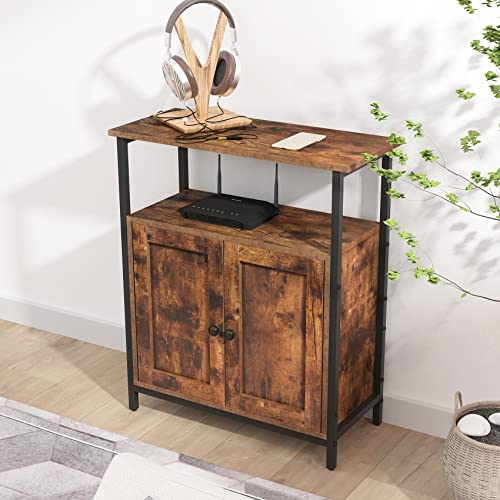 Gernian - دولاب قائم من جيرنيان، دولاب جانبية بلمسة برف، دولاب بأبواب مزودة بشبكات تهوية، متعددة الوظائف في غرفة المعيشة وغرفة النوم (بني ريفي) (68.6 × 30 × 80 سم)