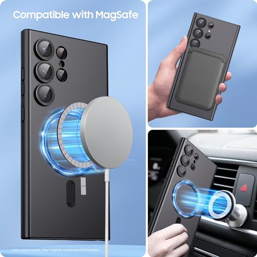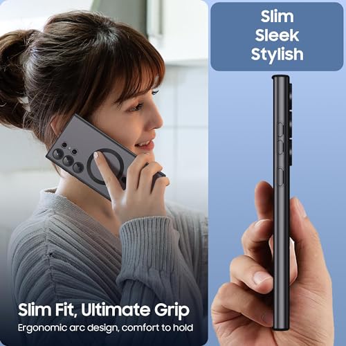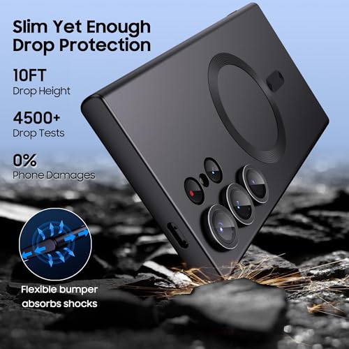GeRRiT - جراب مطور لموبايل سامسونج جالاكسي S23 الترا 5G مع واقي عدسة الكاميرا، متوافق مع ماج سيف، غطاء موبايل سيليكون ناعم ورفيع ومضاد للصدمات لموبايل جالاكسي S23 الترا، اسود فانتوم