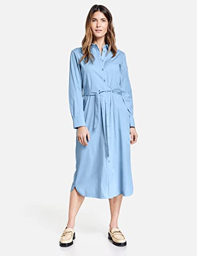 Gerry Weber - فستان نسائي مع حزام ربط كم طويل باساور عريضة من القماش سادة سماوي 42