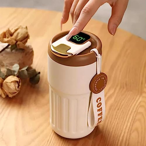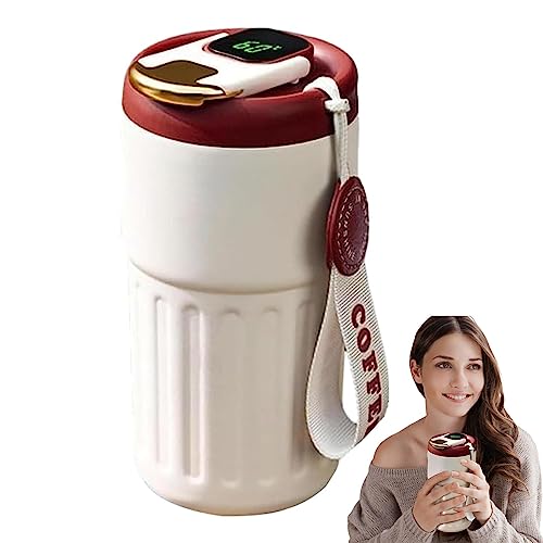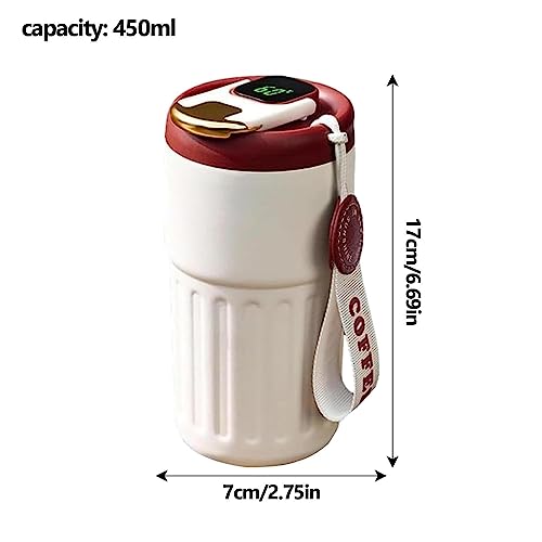 Geruwam - ثيرموس ذكي من جيرووام زجاجة مياه مع شاشة عرض درجة الحرارة 450 مل كوب قهوة رقمي بشاشة LED لعرض مزدوج الجدار الستانلس ستيل محمول متعدد الألوان