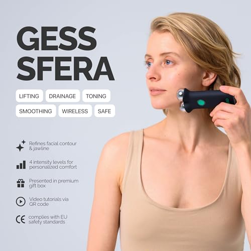 GESS - جهاز شد الوجه سفيرا بالتيار الكهربائي الدقيق مع 4 أوضاع للشدة قابل لإعادة الشحن، جهاز مكافحة التجاعيد وعلامات الشيخوخة وشد البشرة وتحديد ملامح الوجه من جيس