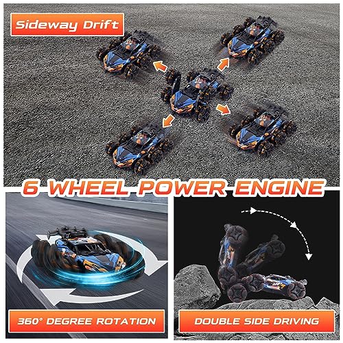 - 【هدايا رائعة ورائعة】 - سيارة حيلة تعمل بجهاز تحكم عن بعد 2.4 جيجاهرتز. هدايا مثالية للأطفال والأولاد من سن 6 و7 و8 و9 و10 و11 و12 سنة والبالغين، هدية مثالية للعودة إلى المدرسة، هدية سيارة لعبة للهالوين/الكريسماس/أعياد الميلاد/عيد الشكر. سهلة لكل الأعمار، أي شخص لديه اهتمام بألعاب سيارات السباق سيستمتع بها.