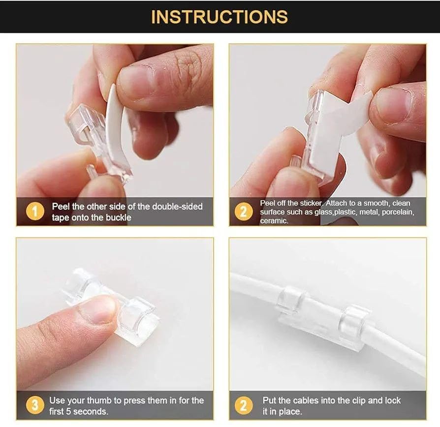 Generic - تخلص من التشابك المزعج للأسلاك مع منظم الأسلاك الأكريليك المزود بشريط لاصق مزدوج الوجهين، سهل التركيب ويمنحك مظهرًا مرتّبًا ومنظمًا في ثوانٍ معدودة فقط. (باكيت 20 قطعه)