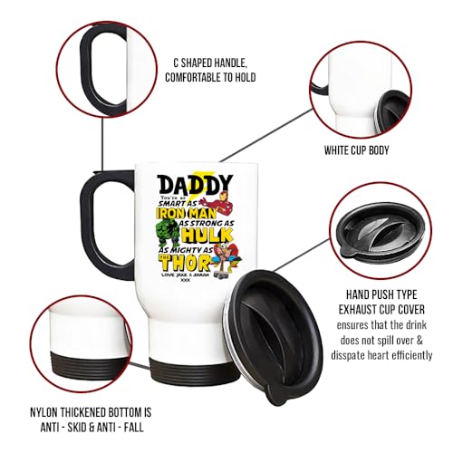Getagift - كوب شاي وقهوة معزول للسفر مطبوع عليه عبارة "You're My Favorite Hero Daddy" هدية للاب من الابن/ الابنة ويوم الاب واعياد الميلاد بلون فضي وابيض (ابيض)