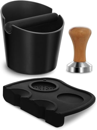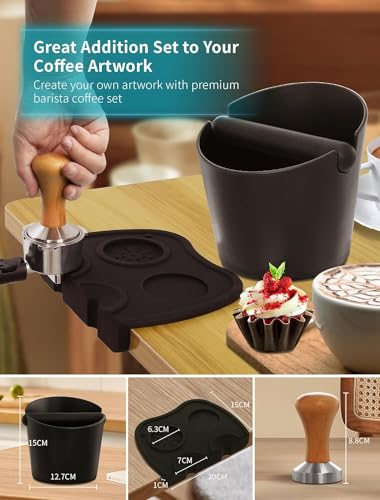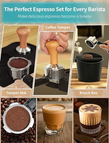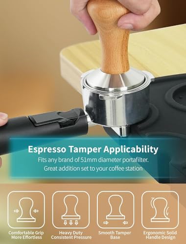 - ملحقات ماكينة تحضير إسبريسو مريحة - 1 × صندوق قهوة و1 × مقبض خشبي 51 ملم من الفولاذ المقاوم للصدأ و1 × قاعدة مكبس قهوة من السيليكون تلبي احتياجاتك المختلفة.