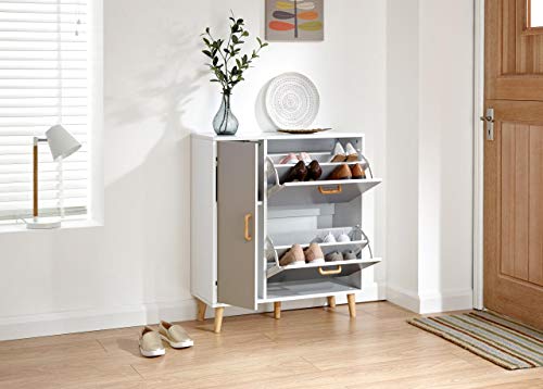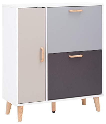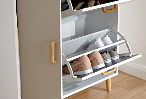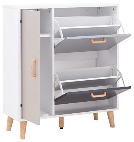 GFW - خزانة جانبية مطلية من جي اف دبليو مع رف وادراج احذية خشبية، منظم تخزين الاحذية في الرواق، خشب، ابيض/رمادي، 29 عمق × 75 عرض × 86 سم ارتفاع