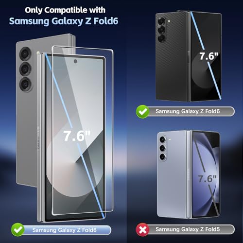 - 【التوافق】مصممة لموبايل سامسونج جالاكسي زد فولد 6 لحماية كبيرة. مصممة بحواف منحنية 2.5 دي مبتكرة، ومتوافقة مع معظم جرابات الموبايل. يرجى التحقق من طراز جهازك قبل الشراء.