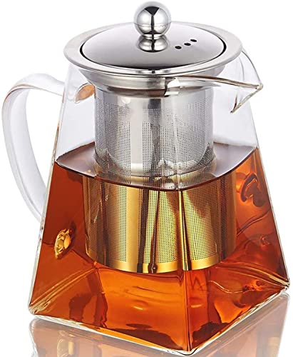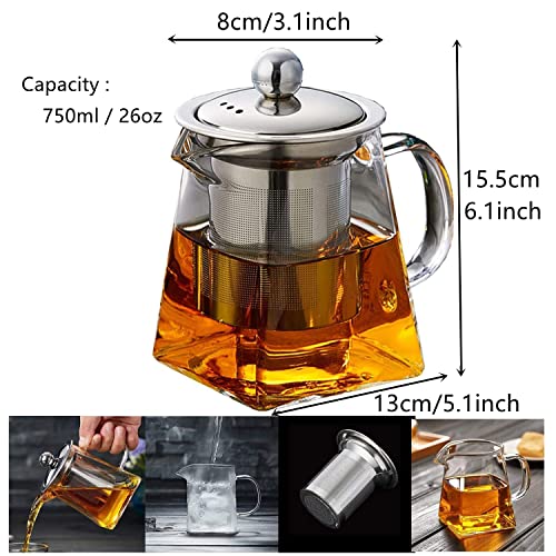 GGEROU - إبريق شاي زجاجي مربع مع مصفاة قابلة للإزالة من جيجيرو، غلاية شاي زجاجية من البورسليكات 750 مل، إبريق شاي زجاجي لأوراق الشاي السائبة للشاي المزهر والسائب والقهوة - يمكن وضعه في الميكروويف وعلى الموقد
