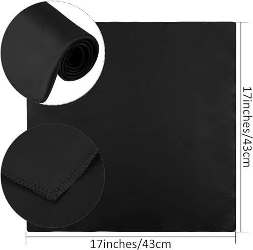 GHAKKE - 12 قطعة من مناديل الطاولة الساتان من جاكي، مناديل حفلات مربعة، 17 × 17 انش، اسود