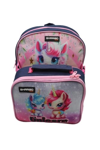 GHARIBO BAGS - شنطة ظهر مدرسية مزودة بشنطة غداء بتصميم وحيد القرن للأطفال من غاريبو
