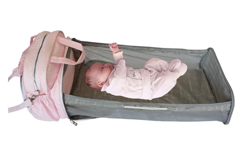 GHARIBO BAGS - شنطة سرير اطفال فاخرة وانيقة قابلة للتحويل ومتعددة الوظائف من غاريبو باجز - مستطيلة بلون بينك