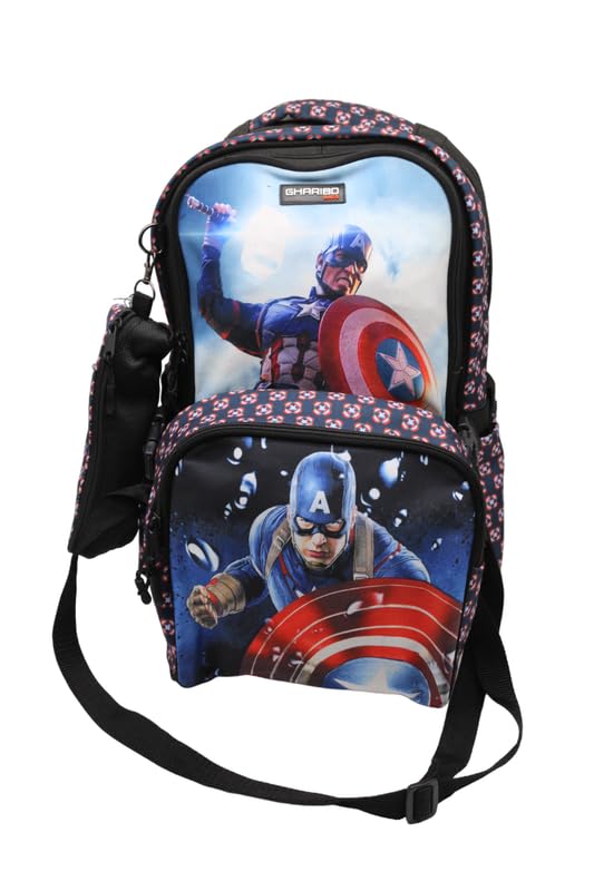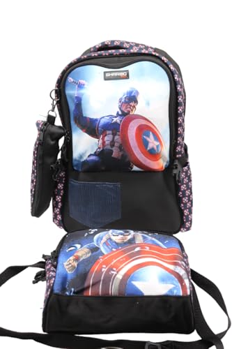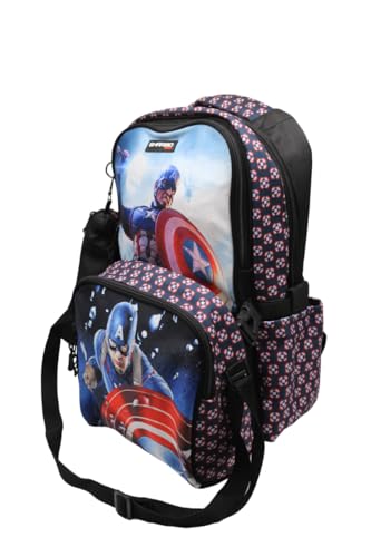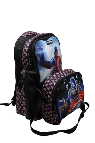 GHARIBO BAGS - شنطة ظهر مدرسية مع غداء مقاس 17 موديل 26 كاب امريكا اسود من غريبو غاريبو باجس كتان