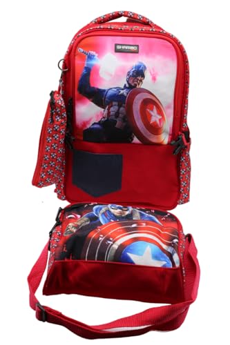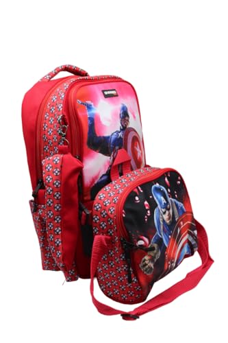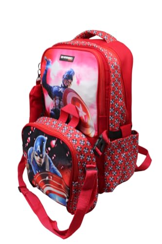 GHARIBO BAGS - شنطة ظهر مدرسية مع غداء مقاس 17 موديل 26 كاب امريكا احمر من غريبو غاريبو باجس كتان