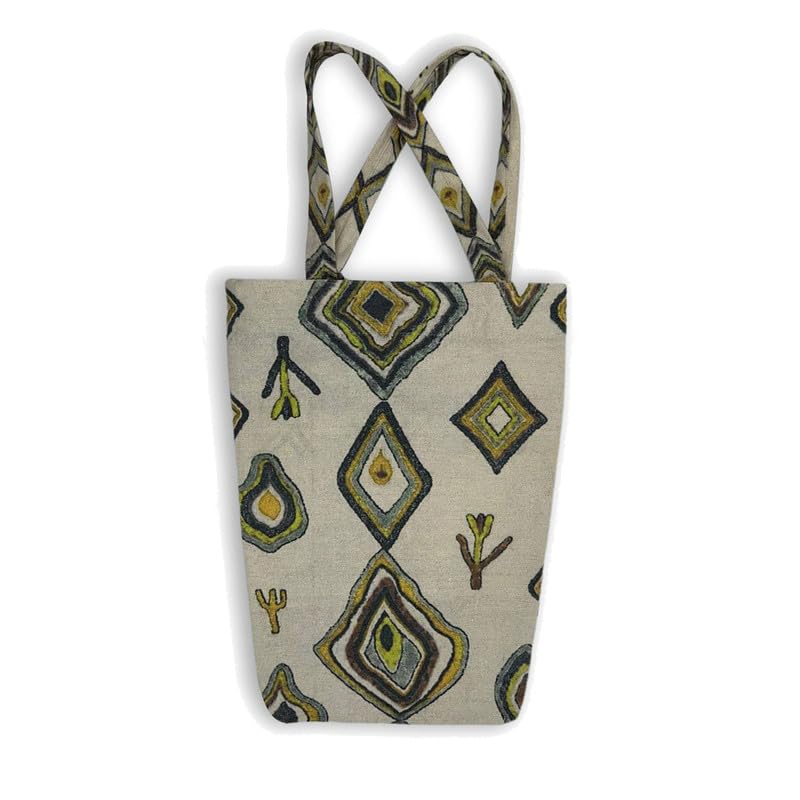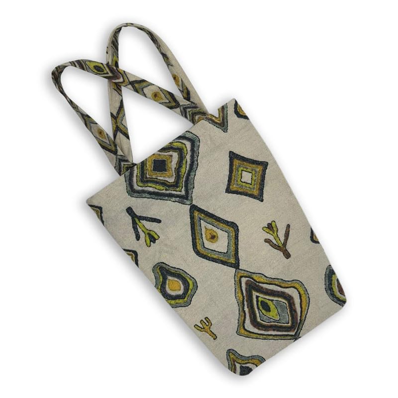 GHARIBO BAGS - شنطة كبيرة توت كاجوال مطبوعة من الكتان للنساء من غاريبو باجز T230009B - مقاس 34 × 42 لون اصفر
