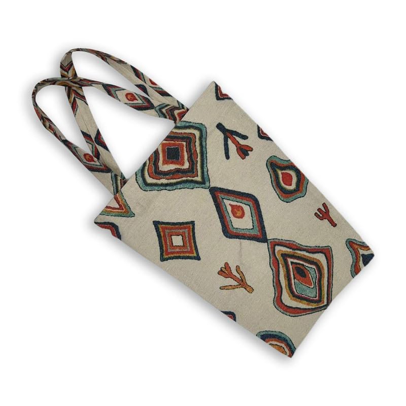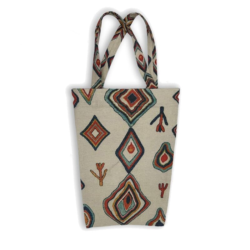 GHARIBO BAGS - شنطة كبيرة توت كاجوال مطبوعة من الكتان للنساء من غاريبو باجز T230009C - مقاس 34 × 42 لون بني