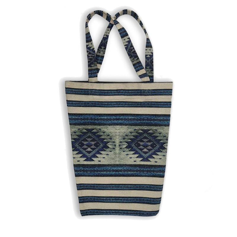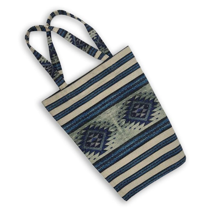 GHARIBO BAGS - شنطة كبيرة توت كاجوال مطبوعة من الكتان للنساء غاريبو باجز T230011C - مقاس 34 × 42 - ازرق