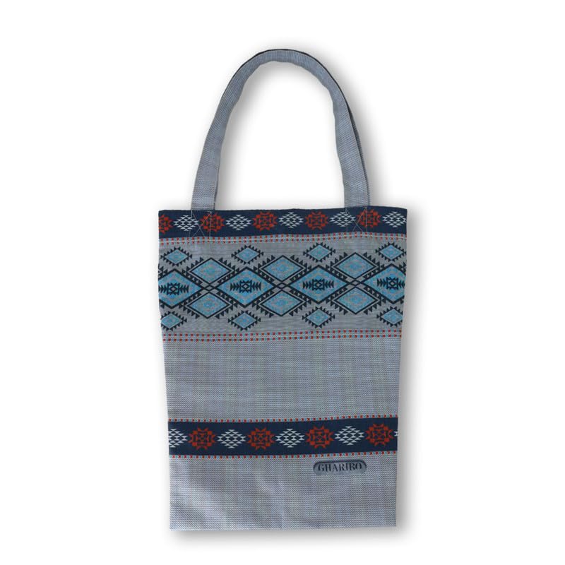 GHARIBO BAGS - شنطة يد كبيرة توت كاجوال مطبوعة من الساتان للنساء من غاريبو باجز T230022B - مقاس 34 × 42 - ازرق فاتح