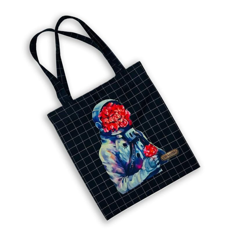 GHARIBO BAGS - شنطة يد كبيرة توت كاجوال بطبعة رائد فضاء للنساء من غاريبو باجز R230092 مقاس 33 × 38 سم، متعددة الالوان