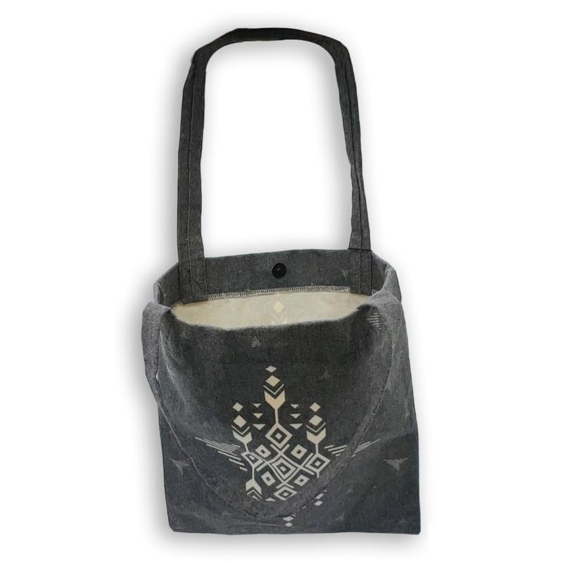 GHARIBO BAGS - شنطة كبيرة توت كاجوال مطبوعة من الكتان للنساء غاريبو باجز R230112B مقاس 33 × 38 سم لون اسود
