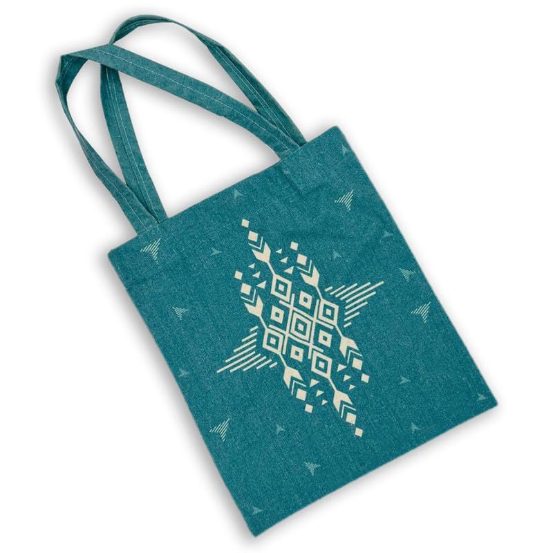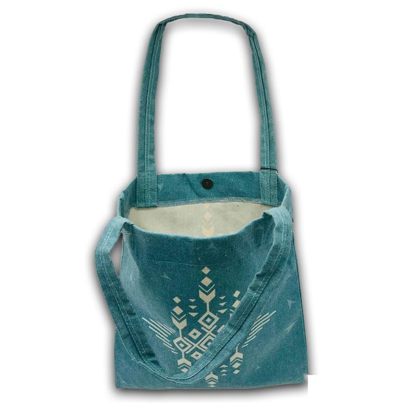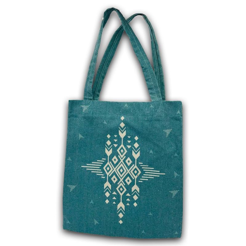 GHARIBO BAGS - شنطة كبيرة توت كاجوال مطبوعة من الكتان للنساء من غاريبو باجز R230112C مقاس 33 × 38 سم، تركواز