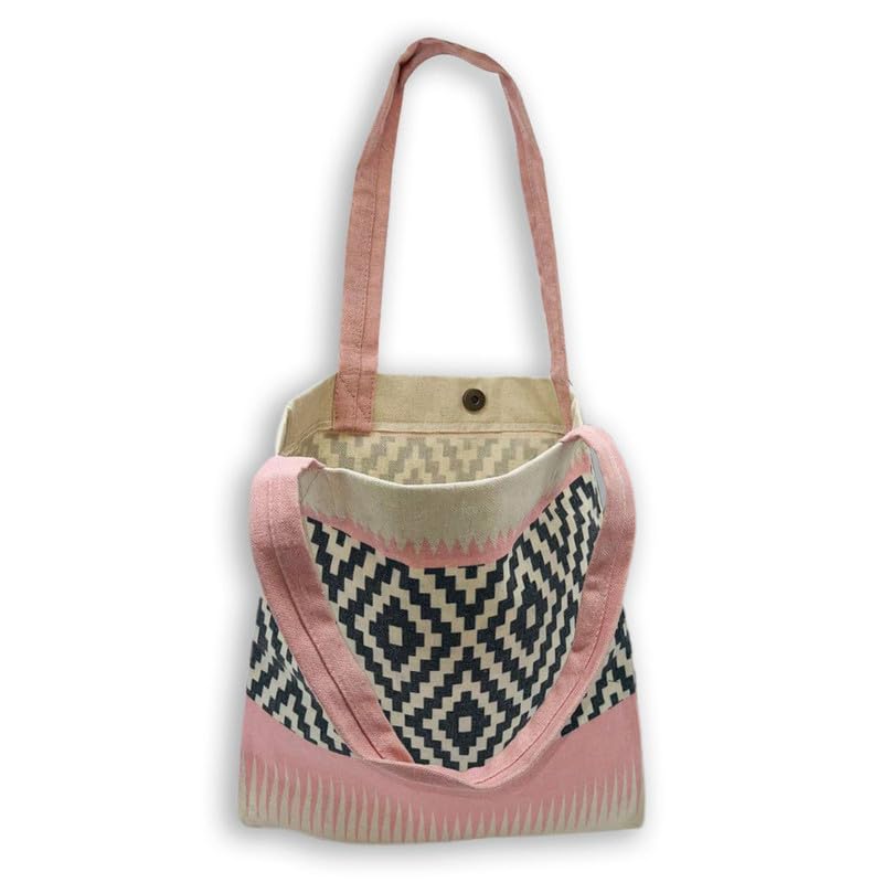 GHARIBO BAGS - شنطة كبيرة توت كاجوال مطبوعة من الكتان للنساء من غاريبو باجز R230113A مقاس 33 × 38 سم، لون بينك