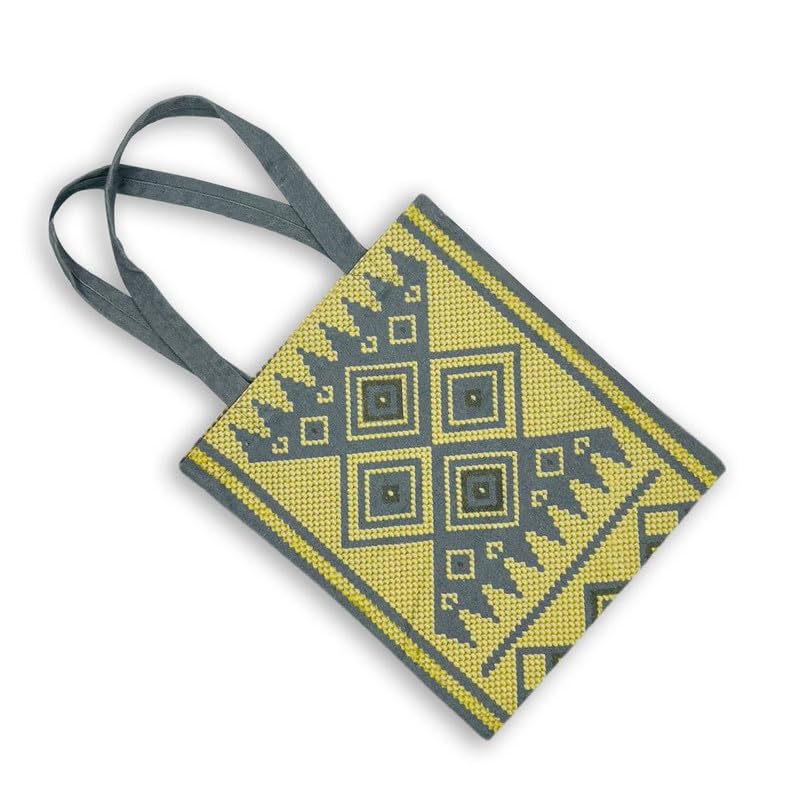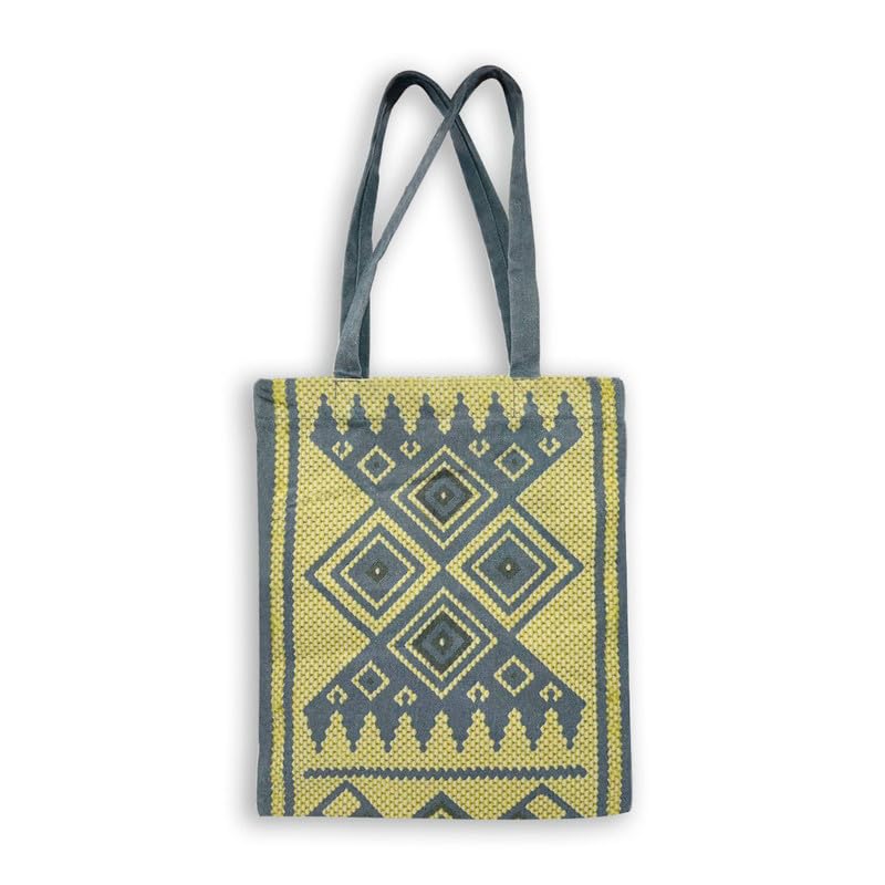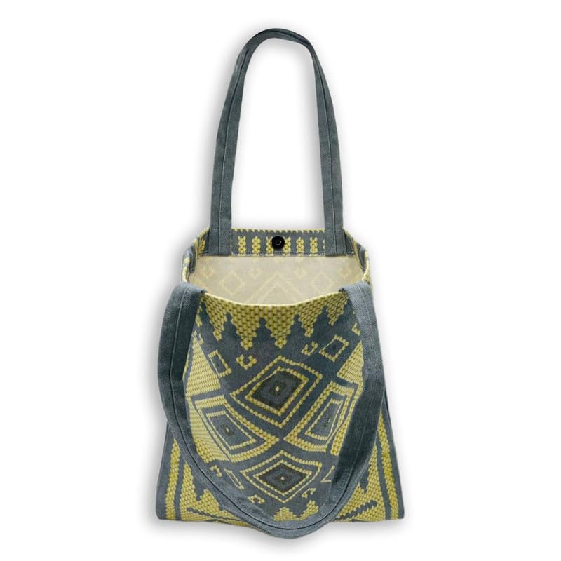 GHARIBO BAGS - شنطة كبيرة توت كاجوال مطبوعة من الكتان للنساء من غاريبو باجز R230114A مقاس 33 × 38 سم، لون اصفر