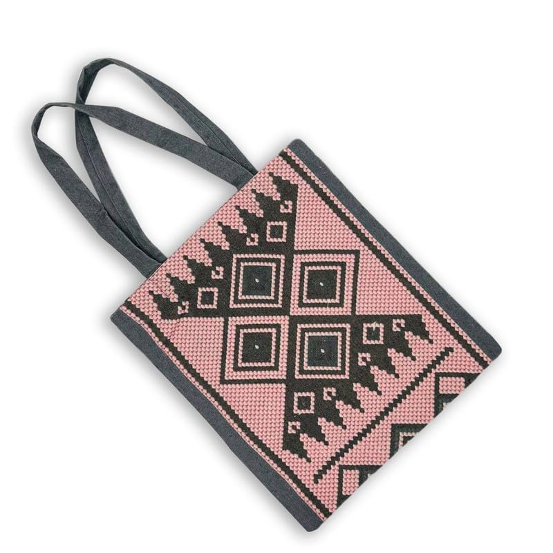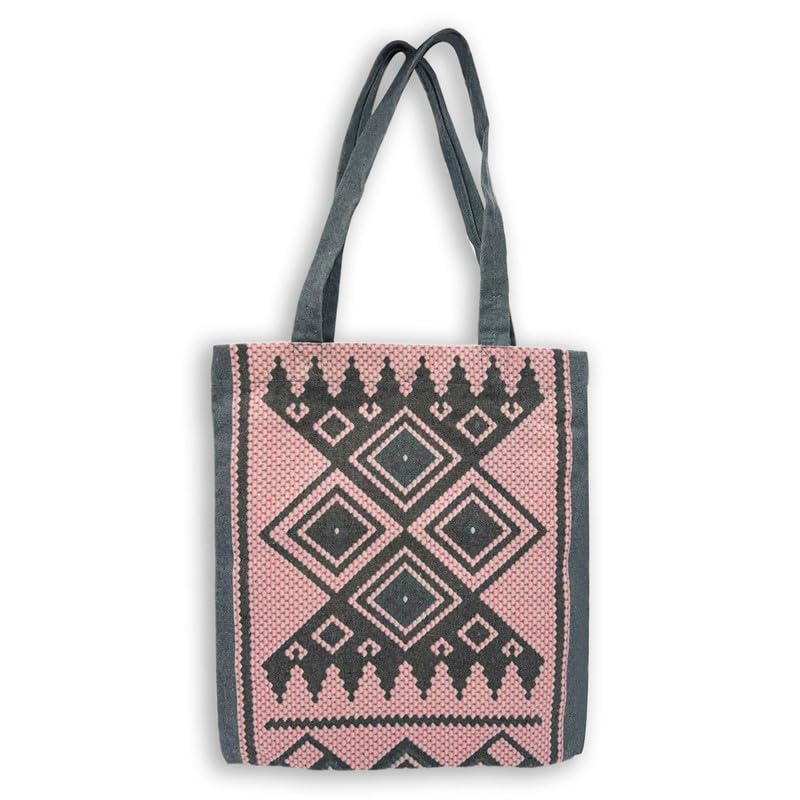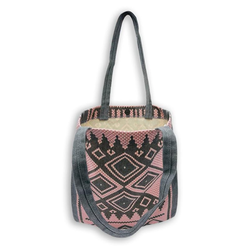 GHARIBO BAGS - شنطة كبيرة توت كاجوال مطبوعة من الكتان للنساء من غاريبو باجز R230114C مقاس 33 × 38 سم، لون بينك