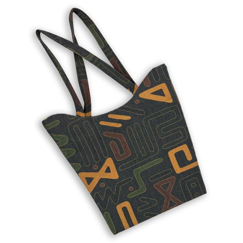 GHARIBO BAGS - شنطة يد كبيرة توت كاجوال مطبوعة من الكتان للنساء من غاريبو باجز W230005B مقاس 33 × 39 لون اسود