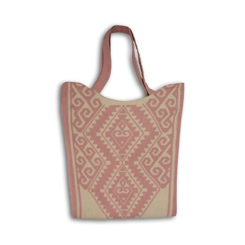 GHARIBO BAGS - شنطة يد كبيرة توت كاجوال مطبوعة من الكتان للنساء من غاريبو باجز W230006B مقاس 33 × 39 لون بينك