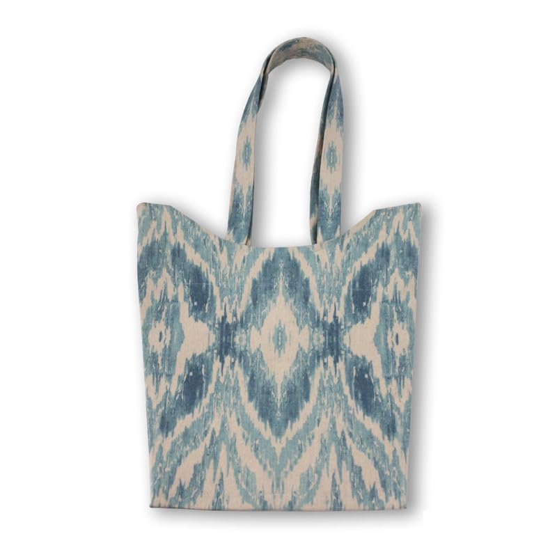 GHARIBO BAGS - شنطة يد كبيرة توت كاجوال مطبوعة من الكتان للنساء من غاريبو باجز، W230013A، مقاس 33 × 39، لون ازرق